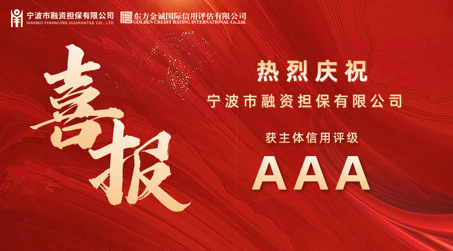 日前,經(jīng)國內(nèi)權(quán)威評級機構(gòu)東方金誠國際信用評估有限公司綜合評定,寧波市融資擔(dān)保有限公司成功獲得AAA主體信用等級評定,評級展望穩(wěn)定,成為全市首家主體信用等級AAA的融資擔(dān)保公司。